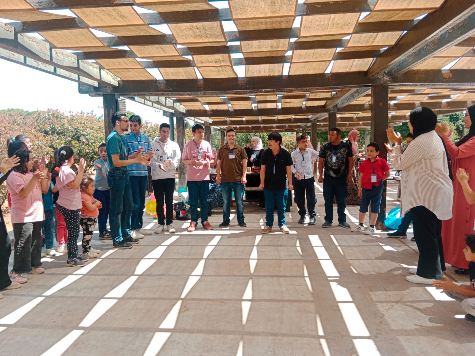 قدم المدرب بلال محمد ورشة تدريبية تضمنت أنشطة متنوعة مثل الرسم، شد الحبل، الألعاب بالكرات والأقماع، والرسم على الوجوه.