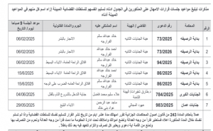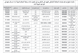 وطلبت المذكرات من المذكورين في الجداول أدناه مراجعة المحاكم المبينة ازاء اسم كل منهم في المواعيد المبينة أدناه.