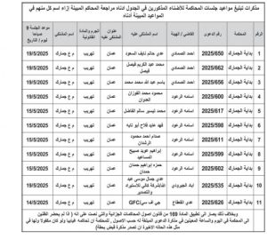 وطلبت المذكرات من المذكورين في الجداول أدناه مراجعة المحاكم المبينة ازاء اسم كل منهم في المواعيد المبينة أدناه.