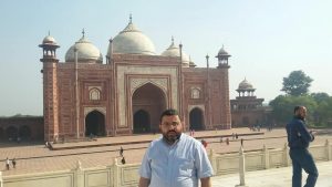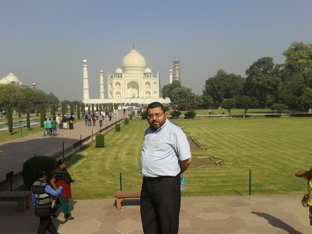 أجمل ما كان في ورشة العمل التي حضرتها في الهند عام 2016 هو تخصيص يوم لزيارة مدينة “أجرا” التي تحتضن احدى عجائب الدنيا السبع الحديثة و احد الدلائل الدامغة على الحضارة الإسلامية في الهند انه “تاج محل” ذلك المبنى الرخامي الذي بناه “شاه جهان” احد ملوك المغول المسلمين تخليدا لزوجته “ممتاز محل” التي احبها لكنها ماتت وهي تضع مولودها . والمبنى الرخامي ذو القبة البيضاء والمنارات الأربعة هو جزء من مجمع يضم العديد من المباني والقصور إضافة إلى المسجد والمداخل الضخمة والتي تحيط بها الحدائق والممرات المائية من كل جانب .