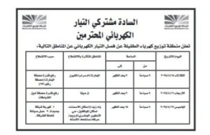 وسيتم فصل التيار الكهربائي خلال فترات محددة، وفق جدول زمني معلن لكل منطقة متأثرة، على أن تُستأنف الخدمة مباشرة بعد الانتهاء من أعمال الصيانة.