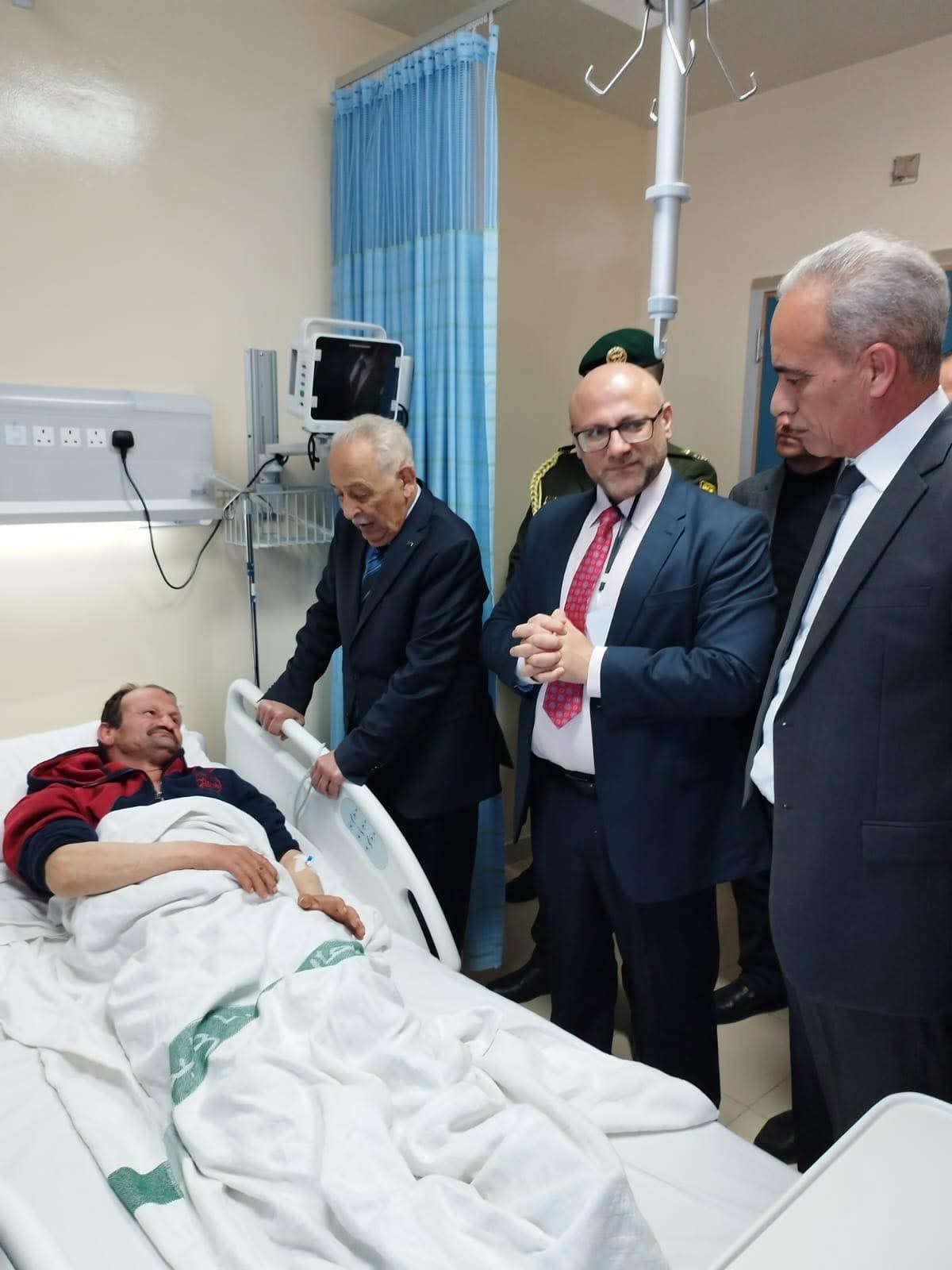نشامى الاخباري _ بتوجيهات من جلالة الملك عبدالله الثاني، اطمأنّ رئيس الديوان الملكي الهاشمي، يوسف حسن العيسوي، الاثنين، على حالة المواطن عمر عبدالرحمن عبيدات، الذي يرقد في مستشفى الأميرة بسمة في منطقة زبدة بمحافظة إربد، إثر إصابته بشظايا صاروخ.