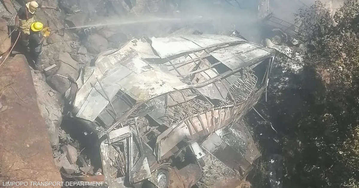 نشامى الاخباري _لقي 45 شخصا حتفهم الخميس؛ في جنوب إفريقيا بحادث سقوط حافلة من جسر على ارتفاع 50 مترا قبل أن تتحطم في قاع واد.
