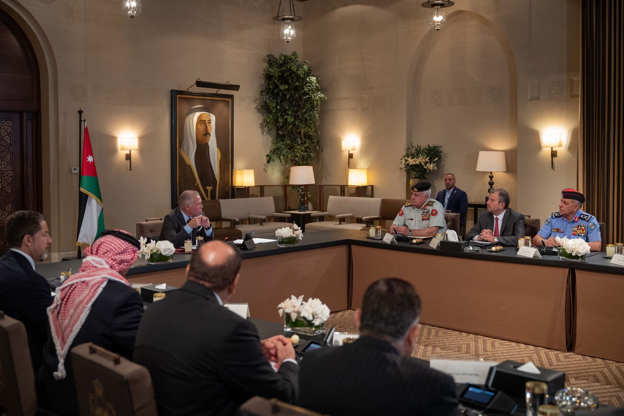وحضر اللقاء رئيس الديوان الملكي الهاشمي يوسف حسن العيسوي، ومدير مكتب جلالة الملك، المهندس علاء البطاينة، ورئيس هيئة الأركان المشتركة اللواء الركن يوسف أحمد الحنيطي، ومدير المخابرات العامة اللواء أحمد حسني، ومدير الأمن العام اللواء الدكتور عبيدﷲ