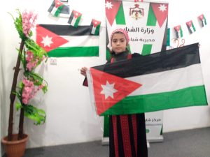 وتحدثت الأديبة مي صالح عن مدلولات ألوان العلم الأردني، مشيرة إلى أن اللون الأسود يرمز لأمجاد الدولة العباسية، واللون الأبيض يدل على نقاء الدولة الأموية، بينما يمثل الأخضر أمل الدولة الفاطمية، أما اللون الأحمر فيوثق بطولة الثورة العربية الكبرى، في حين تختزل النجمة السباعية عقيدة راسخة وقيماً إنسانية سامية.