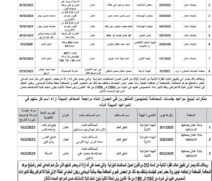 وطلبت المذكرات من المذكورين في الجداول أدناه مراجعة المحاكم المبينة ازاء اسم كل منهم في المواعيد المبينة أدناه.