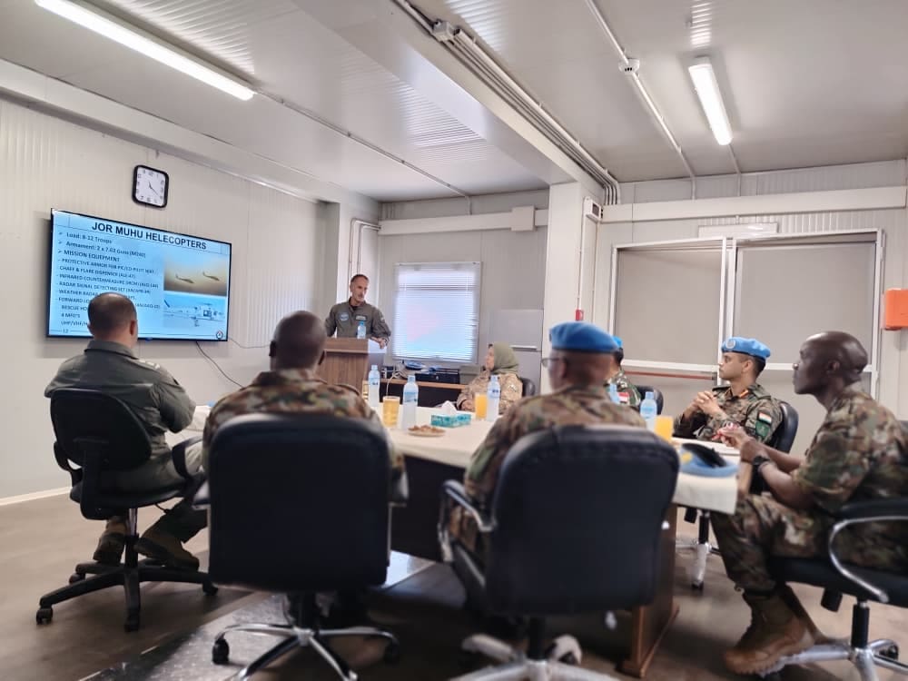 واستمع الضيف إلى إيجازٍ قدمه مساعد قائد الوحدة، بحضور قائد خلية الطيران، تناول طبيعة المهام الجوية والعمليات الميدانية التي تنفذها الوحدة في إطار دعم جهود حفظ السلام وتعزيز الأمن والاستقرار في منطقة العمليات.