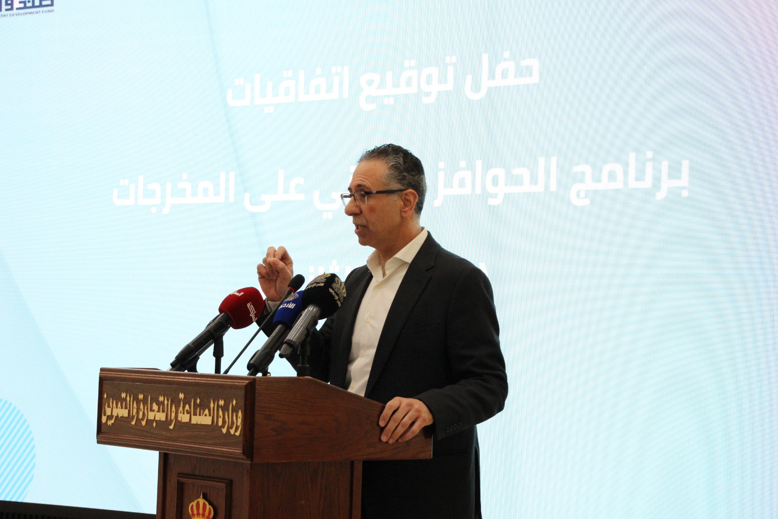 نشامى الاخباري_ رعى وزير الصناعة والتجارة والتموين يعرب القضاة الثلاثاء، حفل توقيع اتفاقيات منح حوافز مالية غير مستردة لـ99 شركة صناعية فائزة في الجولة الثانية من برنامج الحوافز المبني على المخرجات أحد برامج صندوق دعم الصناعة بقيمة تصل إلى 15 مليون دينار.