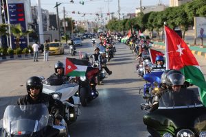 ونظمت المحافظة، مسيرة مركبات ودرجات احتفالا بماسبة يوم العلم، انطلقت من مدينة الحسن للشباب، بالتعاون مع محافظ إربد رضوان العتوم، وشرطة إربد، وقسم سير إربد، إضافة إلى نجدة إربد والدفاع المدني، وعضو مجلس بلدية إربد الكبرى نصر الخالدي، وفريق ذئاب الجبل للدرجات النارية.