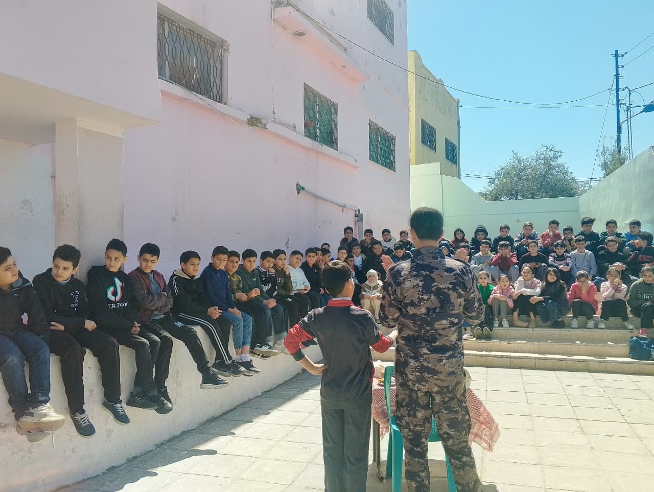 تناول خلالها الملازم علاء بني حمد، الحديث عن السلامة العامة، وطرق اتخاذ الحيطة والحذر في المواقف الصعبة، وأساليب الإسعاف الأولي، والإجراءات الواجب اتباعها في حال التعرض لإصابات طارئة مثل الحوادث المرورية، الإغماء، ضربات الشمس، والحروق، إضافة إلى طرق التعامل معها والوقاية منها.