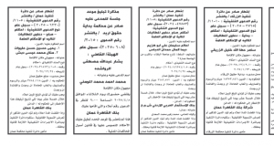 وطلبت المذكرات من المذكورين في الجداول أدناه مراجعة المحاكم المبينة ازاء اسم كل منهم في المواعيد المبينة أدناه.