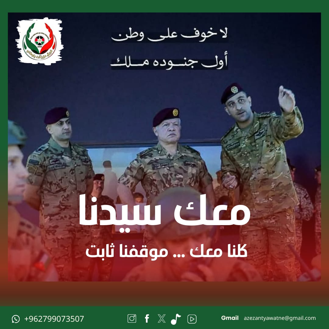 إننا في فريق “عزيزٌ أنت يا وطني” نقف بكل فخر واعتزاز خلف مواقف جلالته، مؤكدين دعمنا الكامل لمساعيه في الحفاظ على سيادة الأردن واستقراره، ودفاعه المستمر عن حقوق الشعب الفلسطيني في وطنه.