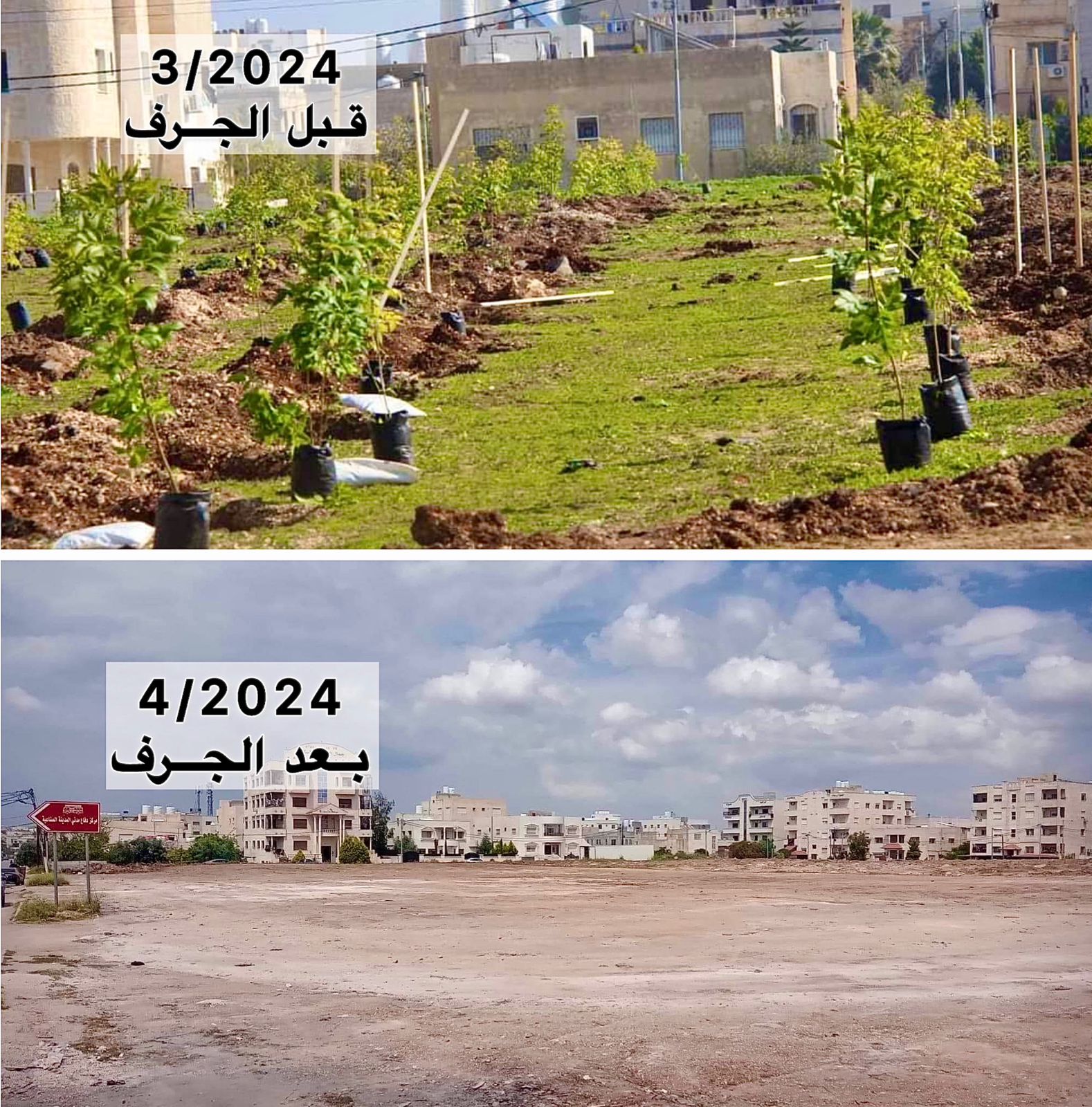 الغريب في الأمر، أن بلدية إربد الكبرى نفذت قبل ما يقارب عام، حملة لزراعة عدد كبير من الأشجار في نفس الحديقة “المقرئ-منطقة الروضة”، ووفقا لشهود عيان قامت البلدية بجرف الحديقة قبل أيام قليلة من عيد الفطر، مبررة ذلك أن الأشجار التي تم زرعها “أكلها” الغنم.