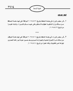 نشامى الاخباري _ صدر في عدد الجريدة الرسمية اليوم الأحد، الموافقة على قرار مجلس الوزراء المتضمن إحالة عدد من الموظفين في الدولة على التقاعد وتاليًا الأسماء: