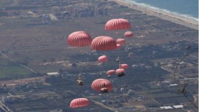 الجيش ينفذ 9 إنزالات جوية مشتركة لمساعدات على غزة