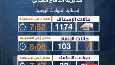 نشامى الاخباري_ تعاملت مديرية الدفاع المدني خلال الــ 24 ساعة الماضية مع (1113) حالة إسعافية مختلفة وبمعدل زمن الاستجابة (7:39)…