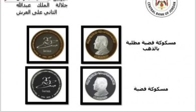 نشامى الاخباري – أصدر البنك المركزي الاثنين، مسكوكات تذكارية فضية مطلية بالذهب ومسكوكات فضية، بمناسبة اليوبيل الفضي. وتاليا نص البنك…